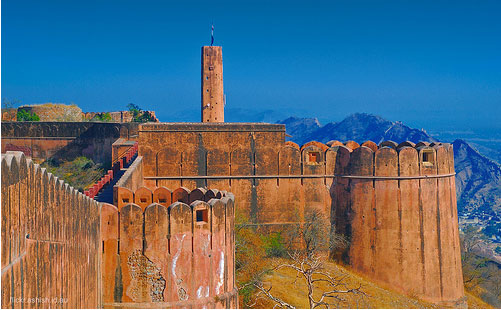 It is one of the few military structures of medieval India preserved almost intact, containing palaces, gardens, open and covered reservoirs, a granary, an armoury, a well-planned cannon foundry, several temples, a tall tower and a giant mounted cannon . Flanked by towering gateways and watchtowers, it contains the world’s largest cannon on wheels. Jaigarh doesn’t have the delicate interiors of Amber Fort, and therefore appears as a real fortress. Climb the Diwa Burj watchtower to get an excellent view over the plains.