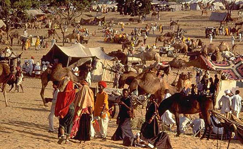Pushkar-The small and beautiful town in a valley just about 14 km off Ajmer of Rajasthan. Surrounded by hills on three sides and sand dunes on the other, Pushkar forms a fascinating location and a befitting backdrop for the annual religious and cattle fair which is globally famous and attracts thousands of visitors from all parts of the world.